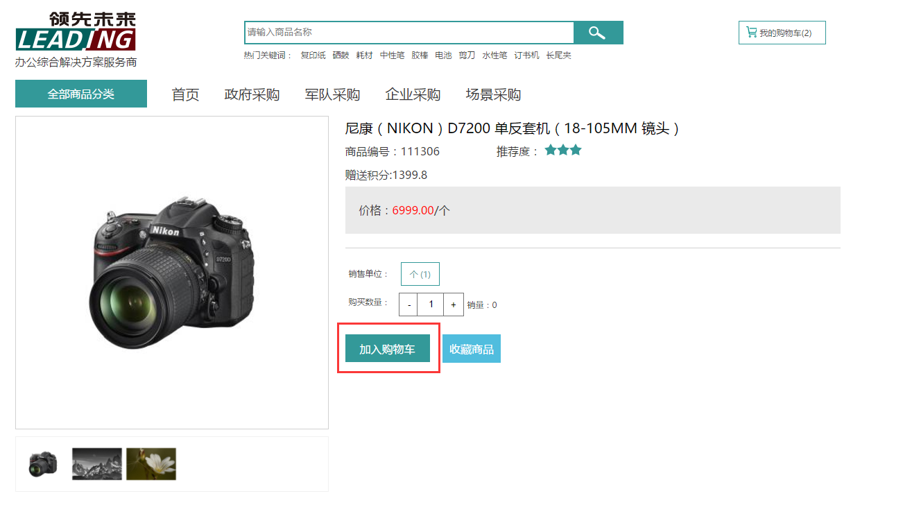 單擊首頁(yè)中的商品圖片或名稱進(jìn)入詳情頁(yè),點(diǎn)擊加入購(gòu)物車即可