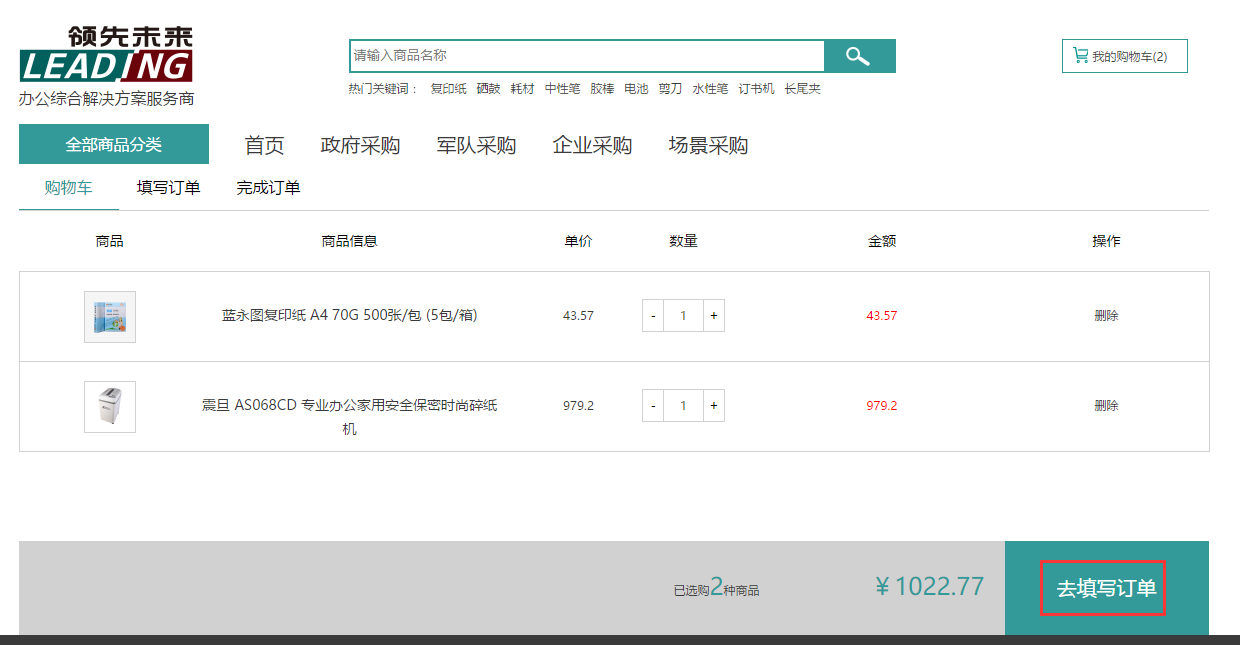 點(diǎn)擊"去填寫(xiě)訂單",
