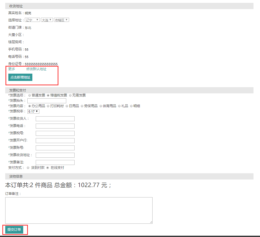 到達(dá)訂單填寫(xiě)頁(yè)面,可修改或填寫(xiě)訂單相關(guān)信息